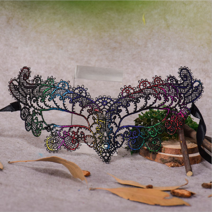 Halloween hollow-out renda berwarna-warni membentuk Lily topeng seksi pesta wanita topeng Bar