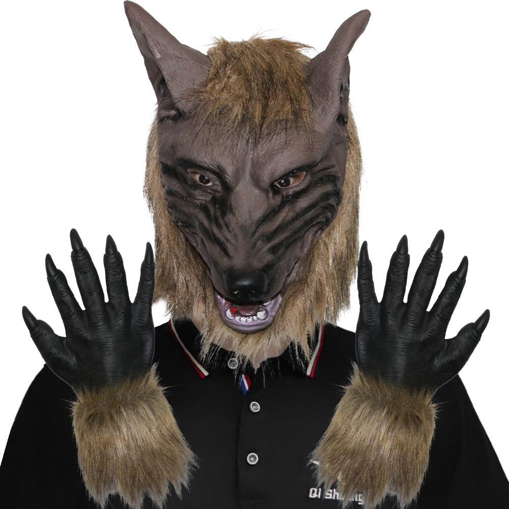 Topeng hewan penutup kepala serigala liar horor hiasan kepala lateks spoof topeng pesta Hari Halloween properti lucu