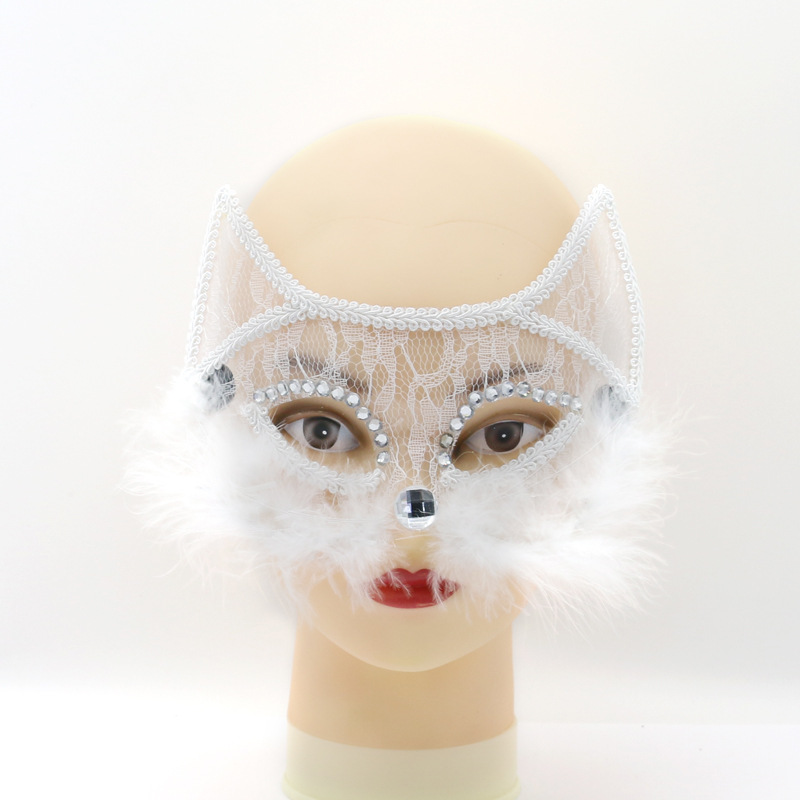 Topeng pesta Halloween pria dan wanita, topeng wajah kucing PVC renda lintas batas, topeng Halloween pesta pertunjukan festival