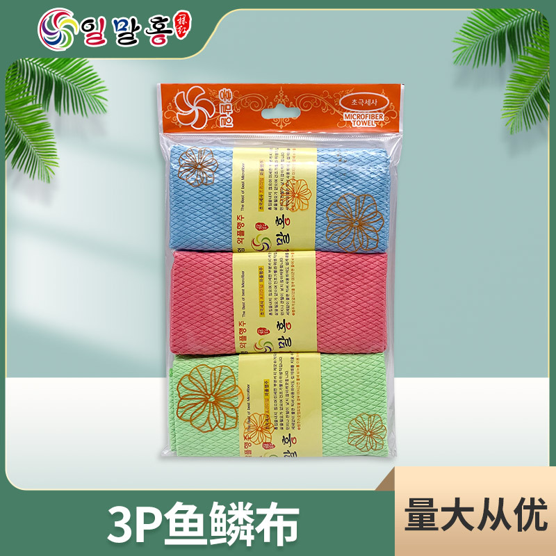 Kain pembersih dapur khusus kaca meja Pembersih tanpa air cetak penyerap serat bebas basah dan kering penggunaan ganda timbangan ikan pencuci piring mulus