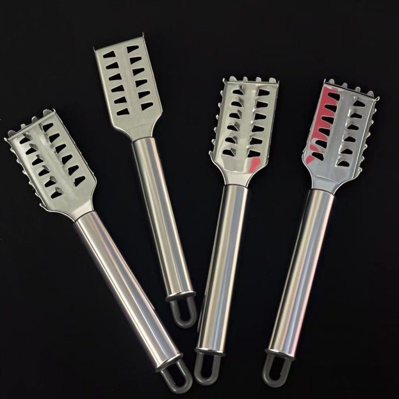 430 pegangan tabung bulat baja tahan karat dengan pegangan persegi kepala Planer skala ikan dapur nyaman rumah tangga sikat pengeruk insang ikan
