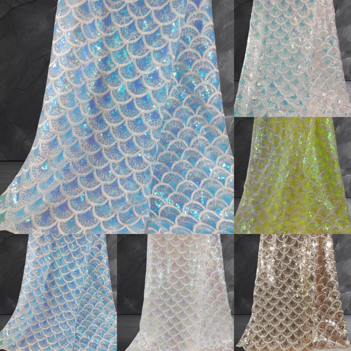 3Ms Ikan Sisik Kain Payet Putri Duyung Simfoni Manik-manik Bordir Jala Gaun Gaun Gaun Pakaian Pertunjukan Pernikahan Kain