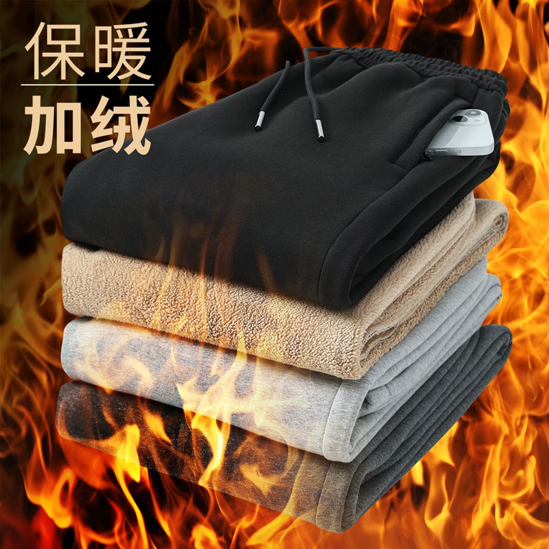 Celana panjang kasmir pria, Bawahan kasual musim dingin longgar, tebal, hangat, bulu domba, celana olahraga musim dingin