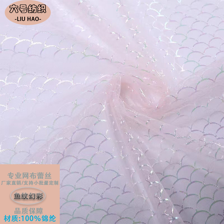 Kain jala anak-anak pola skala ikan gelombang film panas warna ajaib pakaian pertunjukan kostum panggung kain jala multi warna pilihan
