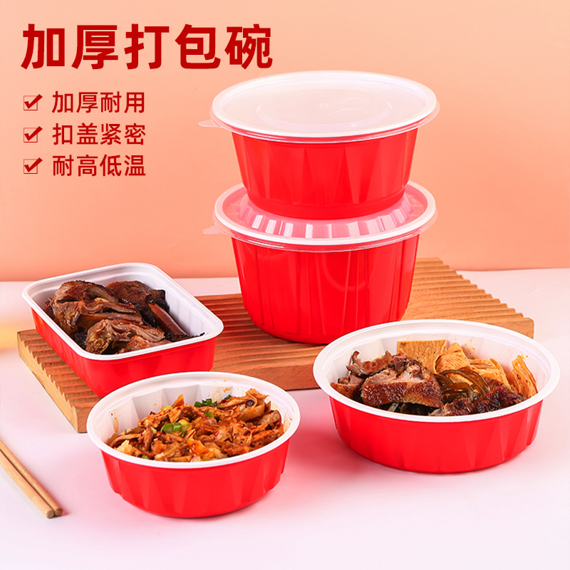 Kotak Kemasan Sekali Pakai Mangkuk Plastik Tahan Suhu Tinggi Tingkat Makanan Kotak Makan Siang Warna Merah Dapat Microwave Kotak Makan Siang Ekstra Tebal Bulat
