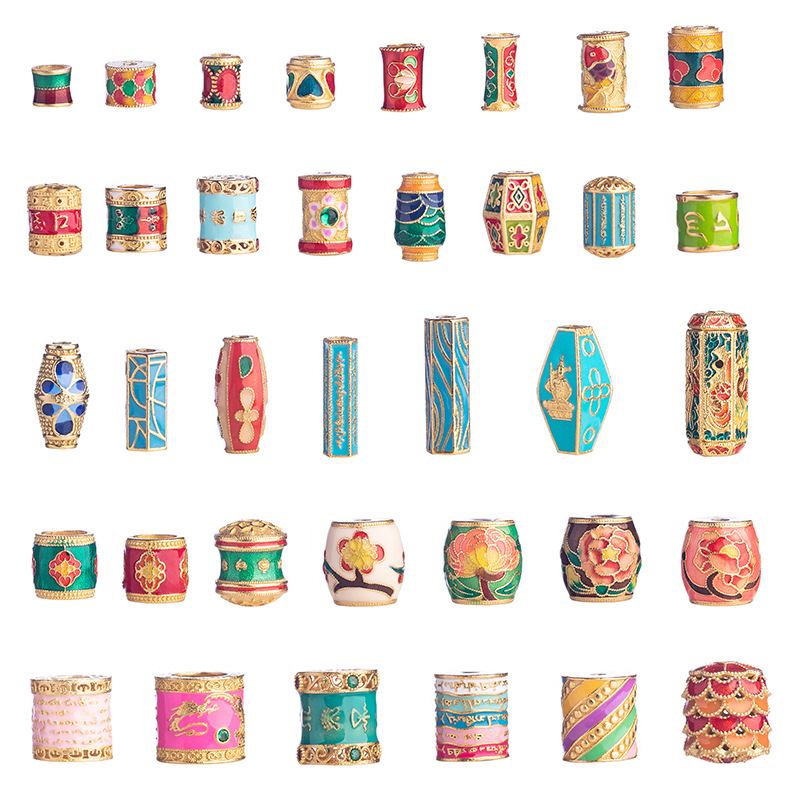 925 perak drop pembakaran minyak biru barel manik-manik tabung tipis pinggang manik-manik delapan harta tabung manik-manik enam kata mantra gelang manik-manik manik-manik DIY aksesoris