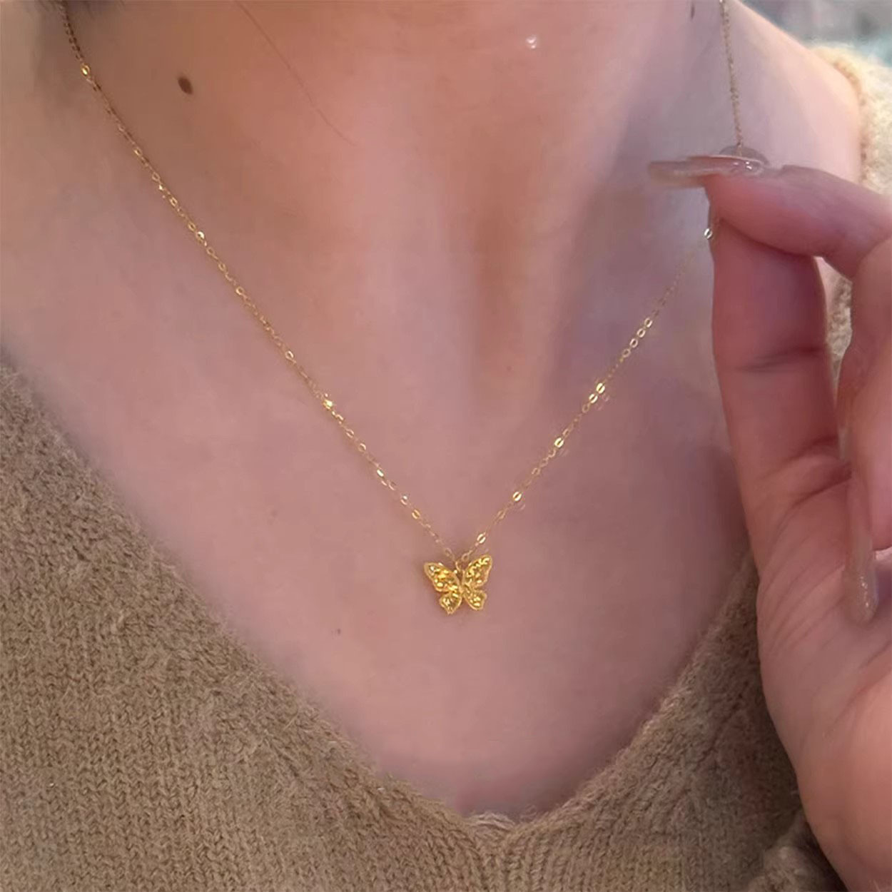 Kalung Kalung Kupu-kupu Es Rusak Sisik Ikan Emas Kalung Leher Wanita Model Baru 2025 Kalung Klavikula Mewah Ringan Kelas Atas Grosir