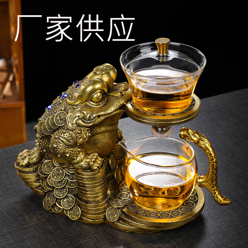 Teko emas rumah tangga, set cangkir teh kung fu malas sepenuhnya semi otomatis, pembuat teh kaca