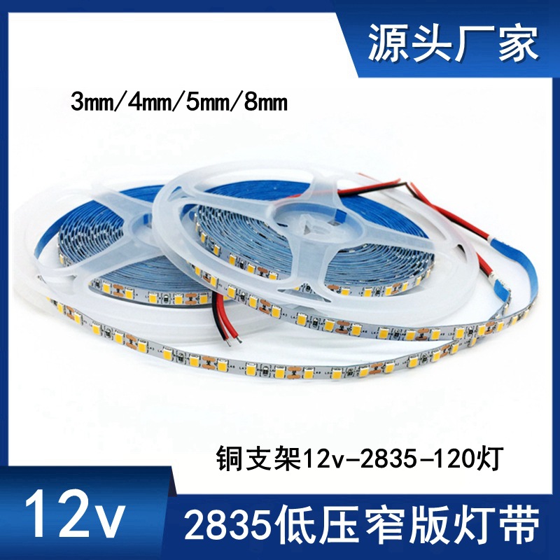 Lampu LED 2835LED strip 120 lampu 12v pelat sempit 3mm 4mm kotak cahaya terang sisi latar belakang bercahaya bar ktv cahaya garis