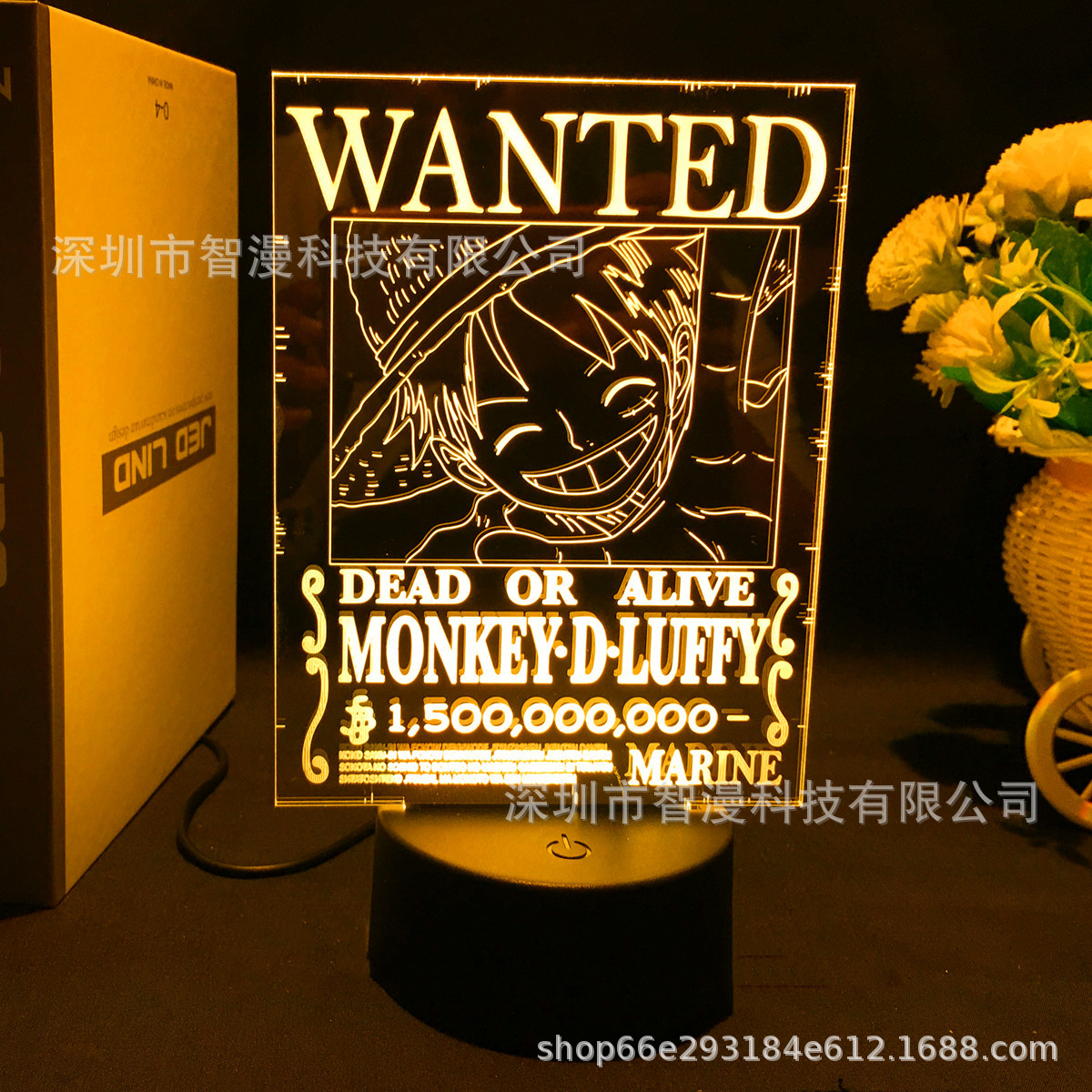 One piece Luffy lampu malam 3D, hadiah dekorasi lampu meja akrilik remote control sentuhan warna-warni LED dua dimensi anime