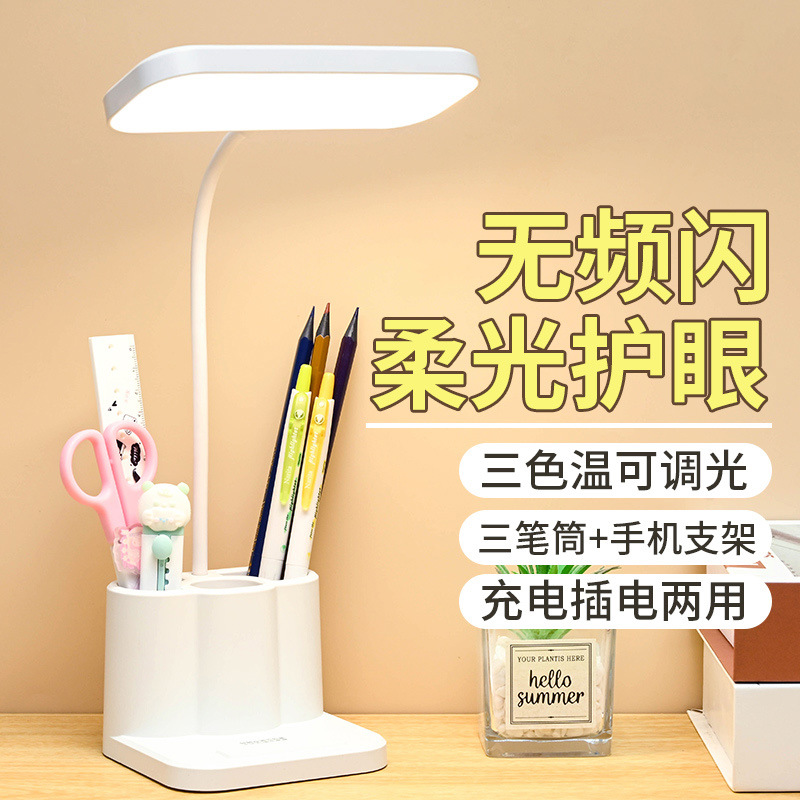 Lampu meja pelindung mata lembut, lampu meja baca, daya tahan lama, pasang di asrama, kamar tidur, lampu belajar, dudukan tiga pena, pelindung mata lembut