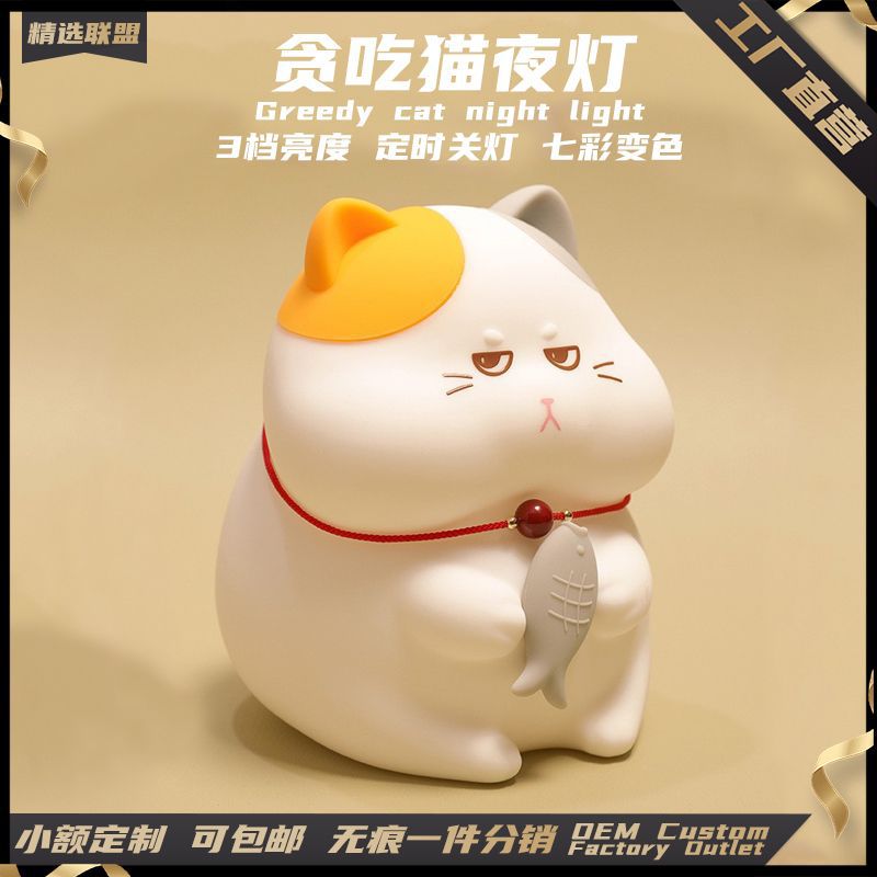 Lampu malam kucing rakus dekorasi kreatif, lampu malam kamar tidur pengisian USB suasana warna-warni