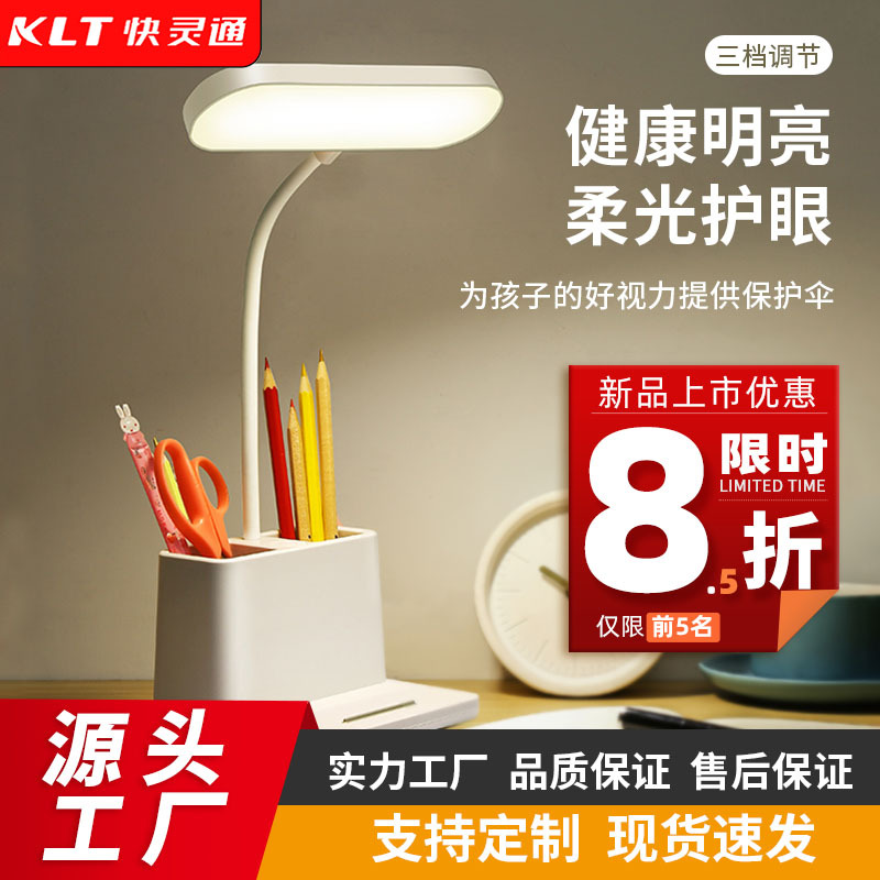 Lampu meja tempat pena siswa LED pelindung mata dapat diisi ulang fungsi ganda untuk membaca dan belajar di asrama, lampu samping tempat tidur multifungsi, lampu malam