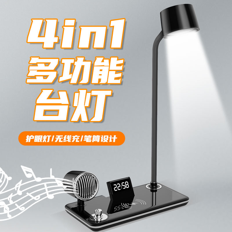 Lampu meja nirkabel pintar lintas batas, speaker Bluetooth, musik multifungsi, dapat diatur kecerahannya, tampilan digital, tampilan waktu, lampu meja pelindung mata