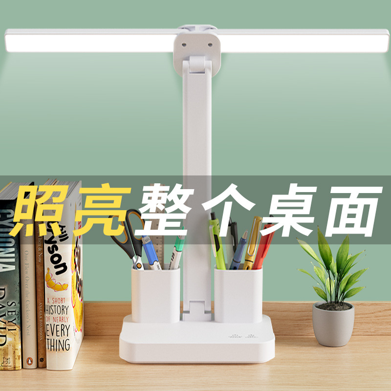Lampu meja kecil LED dua kepala, lampu meja kecil LED dapat diisi ulang, pelindung mata, lampu belajar anak-anak, lampu meja asrama, lampu samping tempat tidur