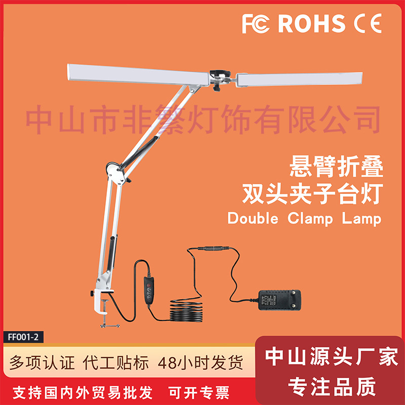Klip Amerika Lampu Meja Lipat Kepala Ganda Lengan Panjang Lampu Tato Kecantikan Manikur Meja Kerja USB Lampu Kepala Tempat Tidur