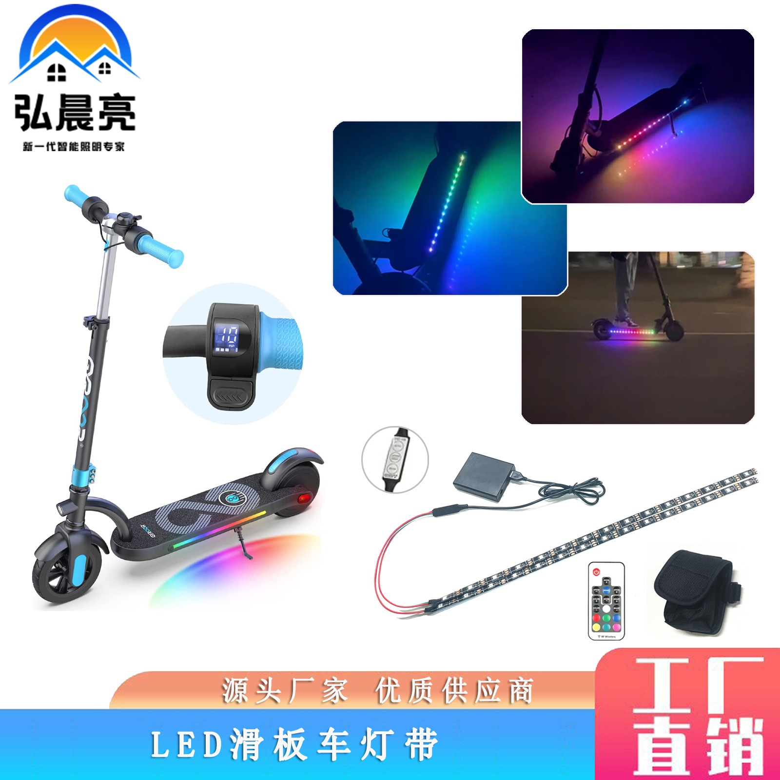 Lampu skuter listrik, strip cahaya lari warna-warni profesional skuter sasis lampu Xiaomi 1S RGB