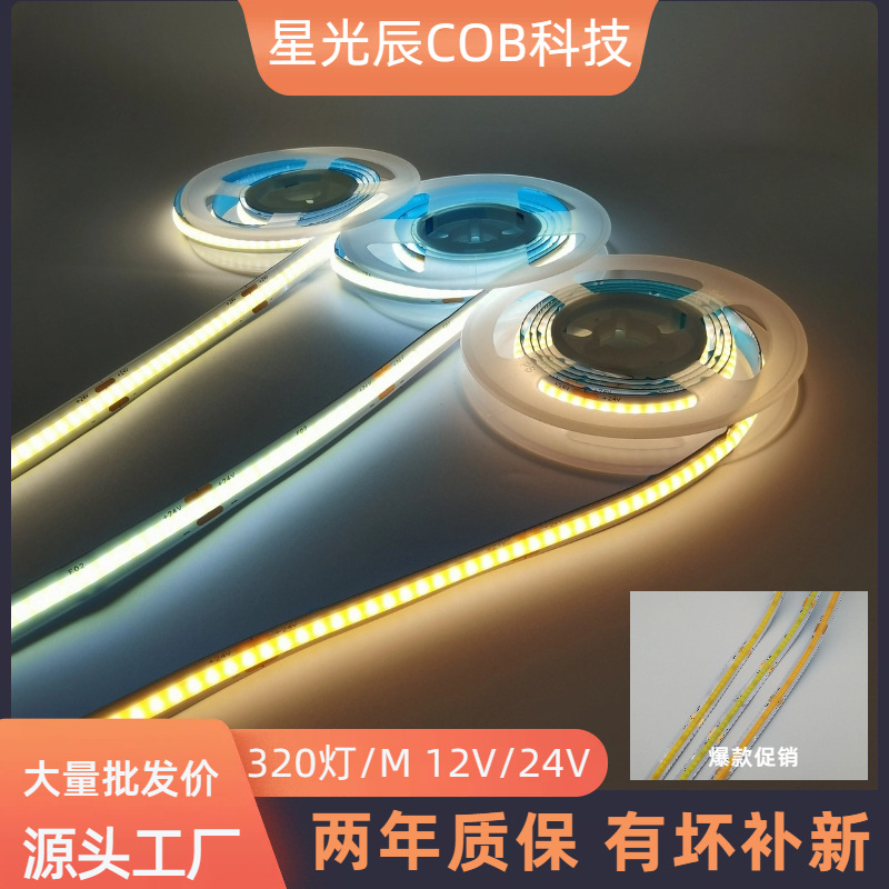 Strip lampu COB panas grosir 12V24V320 manik-manik/meter ledcob merekat sendiri strip cahaya LED bercahaya tegangan rendah