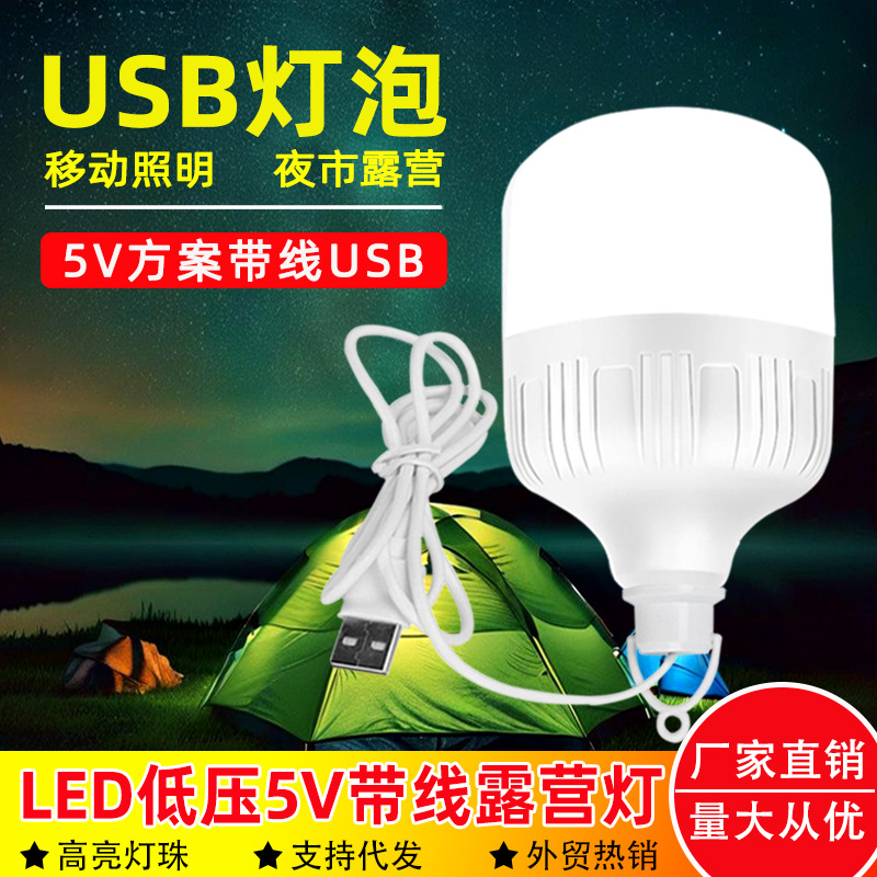 Lampu bohlam USB tinggi Fu Shuai, cahaya berkemah darurat luar ruangan, pengisian daya harta karun 5v bohlam pasar malam lampu kios