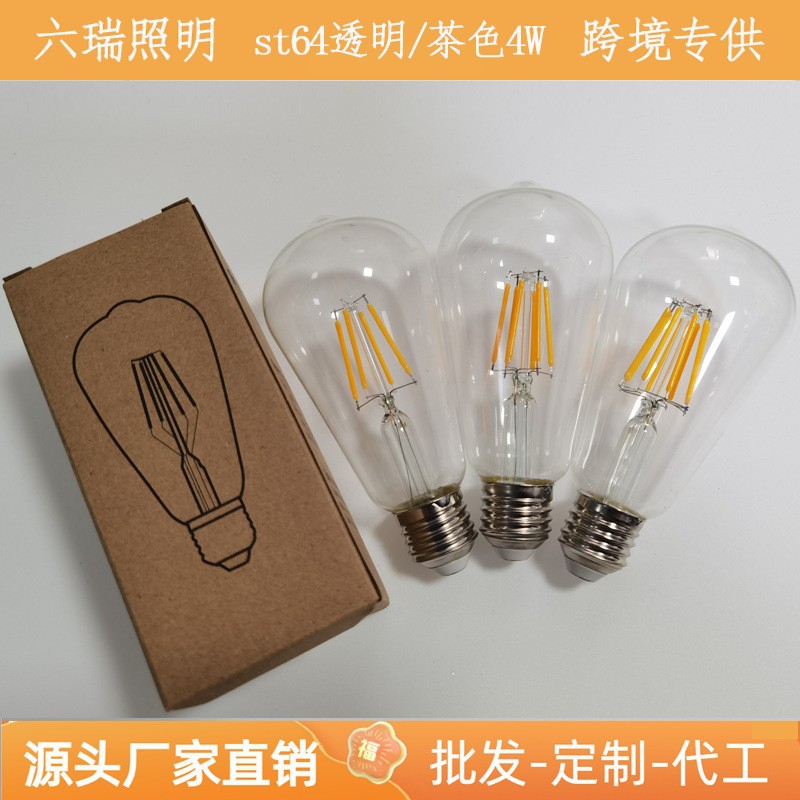 ST64 Edison bola lampu LED transparan, bohlam lampu LED e26e27 retro, pabrik grosir lintas batas