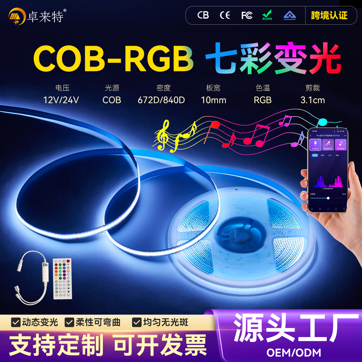 COB strip lampu suhu dua warna, bilah lampu 24vled voltase rendah papan kosong tahan air epoksi TV latar belakang tiga warna suhu