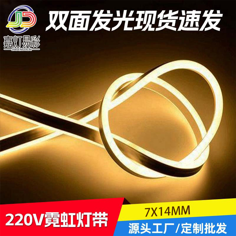Strip lampu fleksibel led voltase tinggi 110V/220V, strip lampu silikon neon dua sisi bercahaya PVC hemat energi