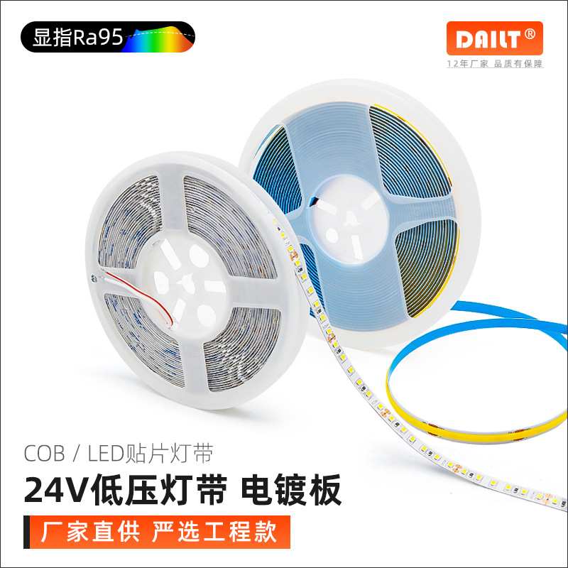 Strip lampu LED langit-langit rumah tangga, strip lampu cob, strip lampu lembut langit-langit SMD2835 sorot berperekat 12v 24v tegangan rendah
