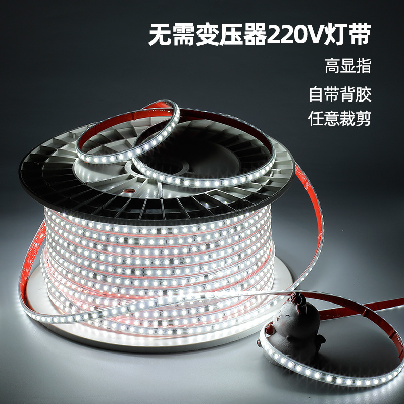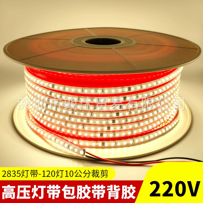 Lampu LED strip 220V bebas-berkendara, 2835 tegangan tinggi 120 paket lampu pita perekat 10cm potongan potongan lampu setrip