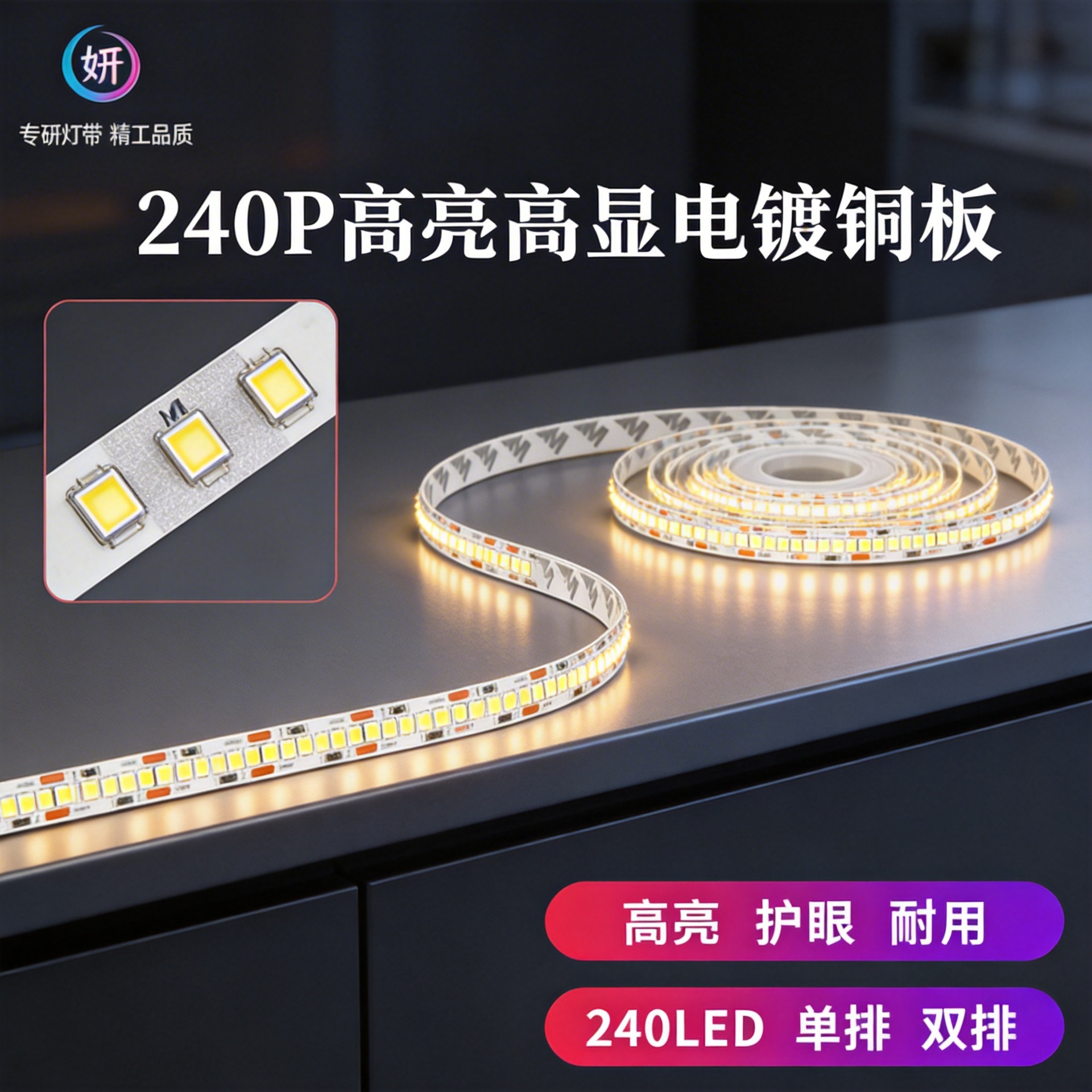 Lampu led strip 12V2835 SMD kepadatan tinggi 240 manik-manik tampilan tinggi papan electroplating lemari kaca self-adhesive tipe garis cahaya strip