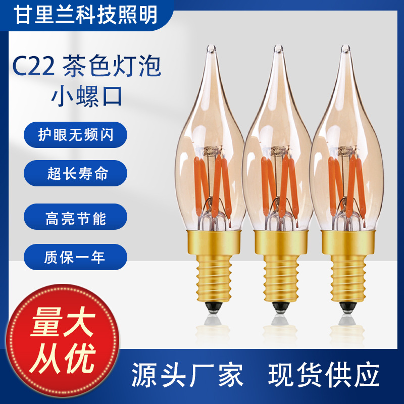 Lampu LED, C22 coklat Edison tarik bohlam koridor, dekorasi dapat diredupkan hangat kuning lampu sekrup kecil