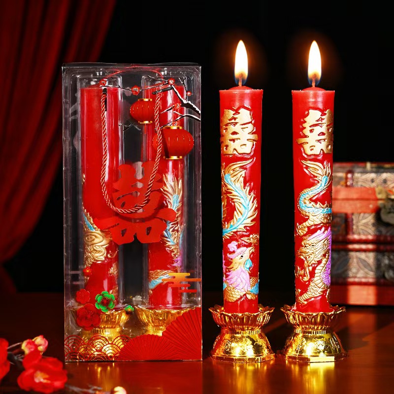 Perlengkapan Pernikahan Upacara Pernikahan Daquan Lilin Naga Lilin Phoenix Sepasang Lilin Pernikahan Dekorasi Kamar Pernikahan Lilin Merah Lilin Bunga