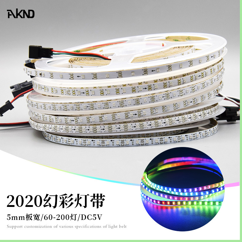 Strip lampu warna-warni 5mm dengan IC bawaan yang dapat diprogram titik tunggal suasana kontrol tunggal penuh warna balap kuda air berlari strip lampu warna-warni berperekat