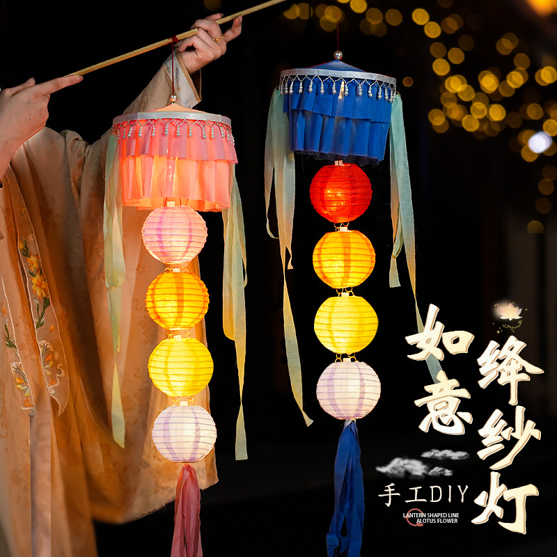 新年灯笼创意古风绛纱灯过年手提花灯手工diy材料包发光马年宫灯