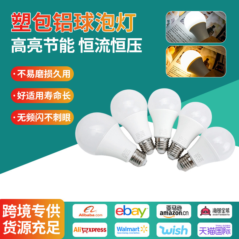 Lampu Sekrup LED Lintas Batas Tas Plastik Lampu Bohlam Bola E27 Aluminium Super Terang Lampu Rumah Tangga Lampu Hemat Energi Grosir