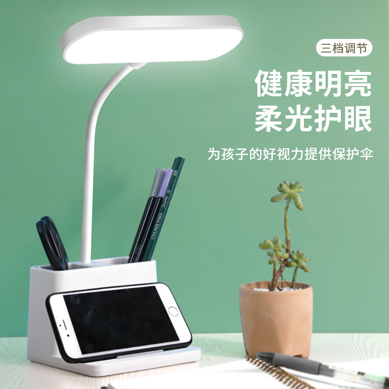 Kuailingtong lampu meja pintar LED, pena pemegang lampu meja pabrik grosir pengisian USB siswa belajar asrama membaca lampu meja pintar