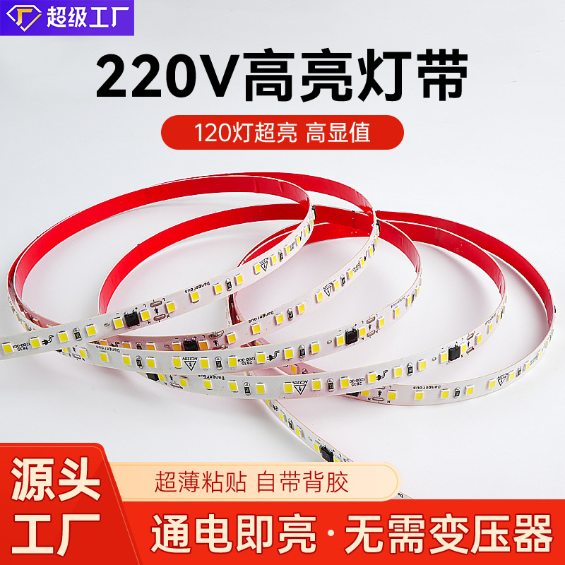 Lampu lembut tekanan tinggi 220v, lampu strip tanam, lampu linear langit-langit, dekorasi rumah ruang tamu, perekat diri dengan strip led