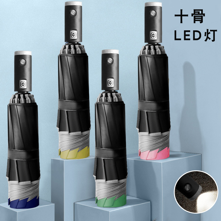 Payung terbalik lipat otomatis strip reflektif, payung cerah lipat tiga tulang sepuluh lipat otomatis