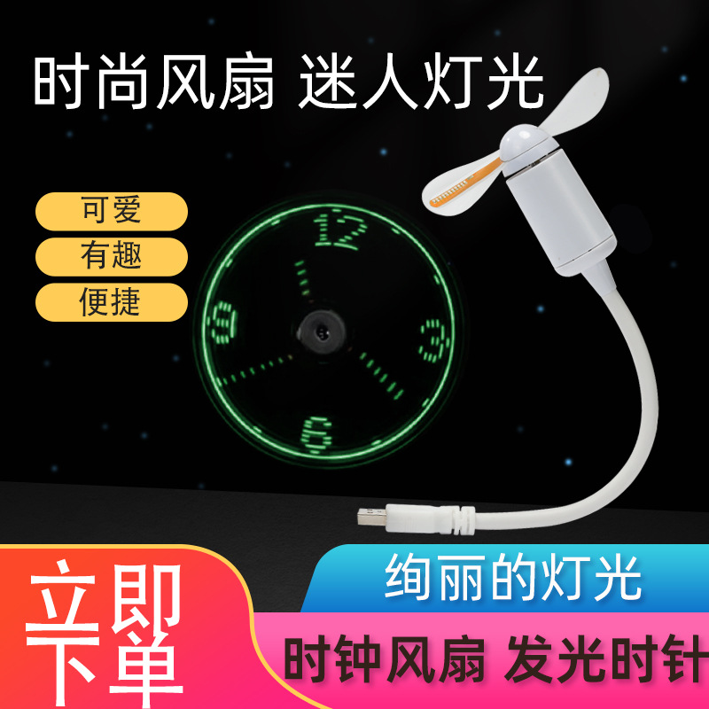 Lintas batas flash kata kipas kreatif hadiah led bercahaya iklan kipas usb imitasi jam kipas meja kantor