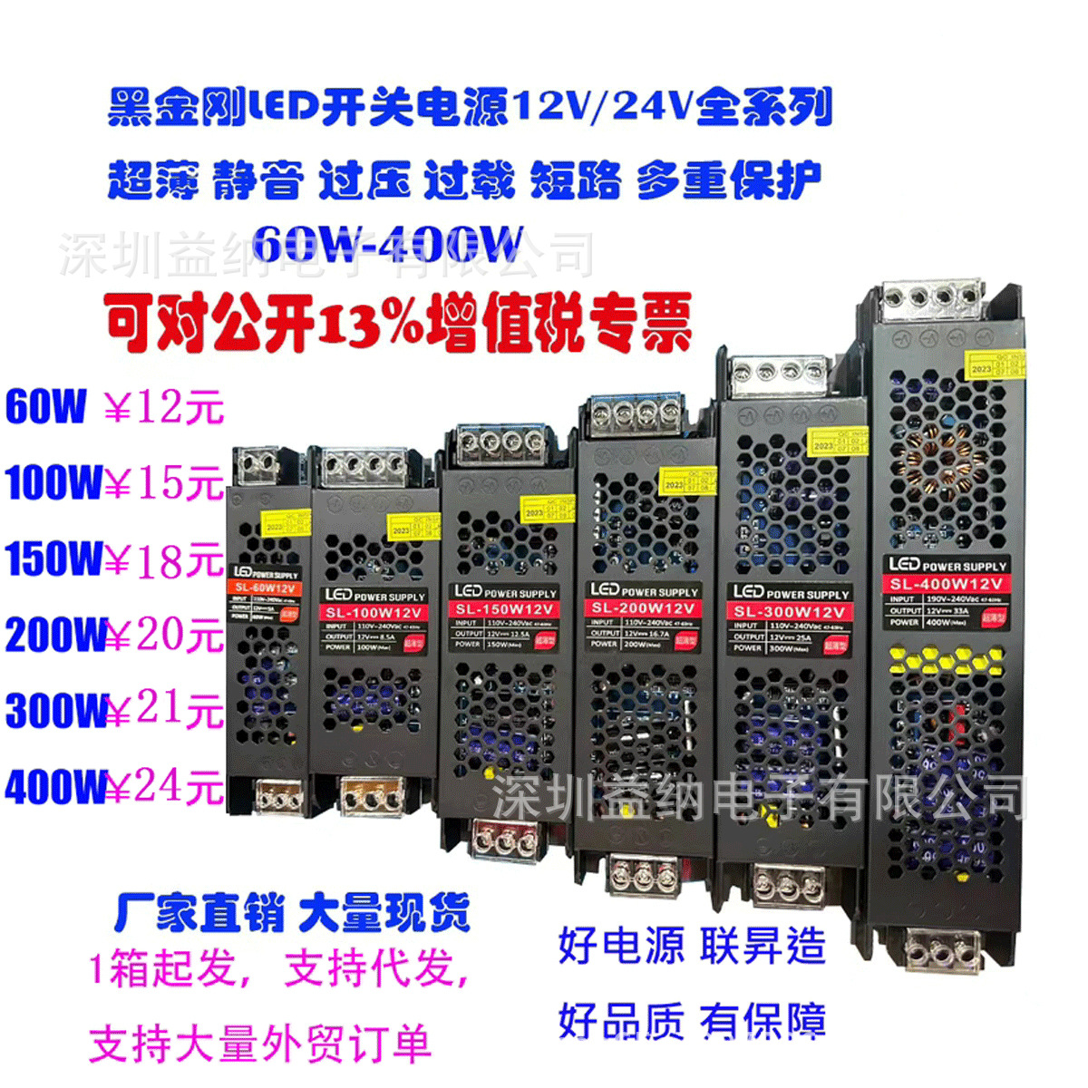 LED Bersinar Kata Tahan Hujan Catu Daya 12V33A Kotak Lampu Luar Ruangan Tanda Iklan 12V400W Berubah Grosir