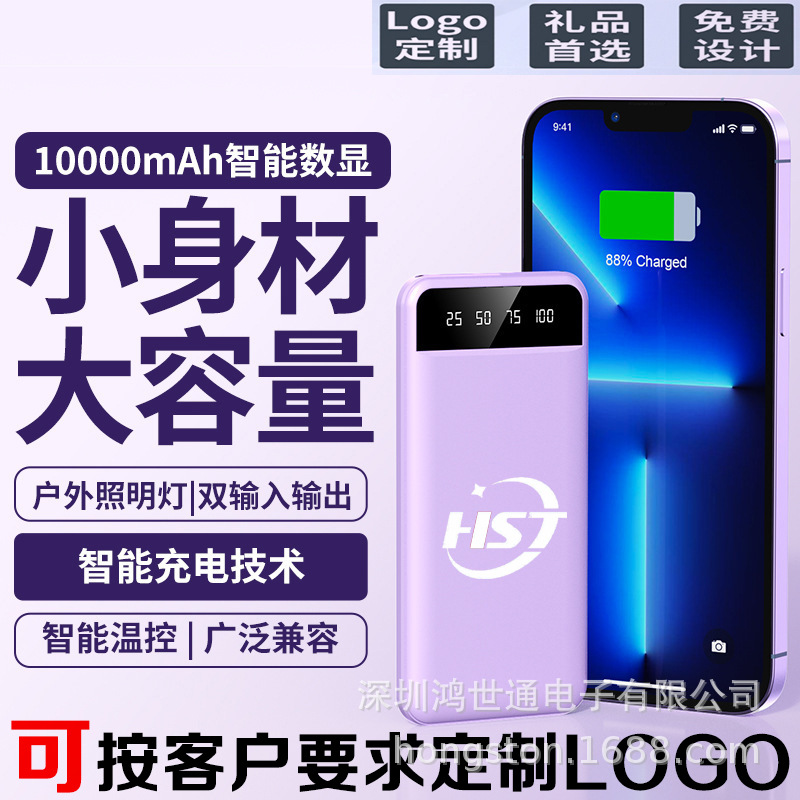 Power Bank tampilan digital portabel, cetak logo hadiah Power Bank tampilan digital portabel kekuatan besar 20000 mA ultra-tipis
