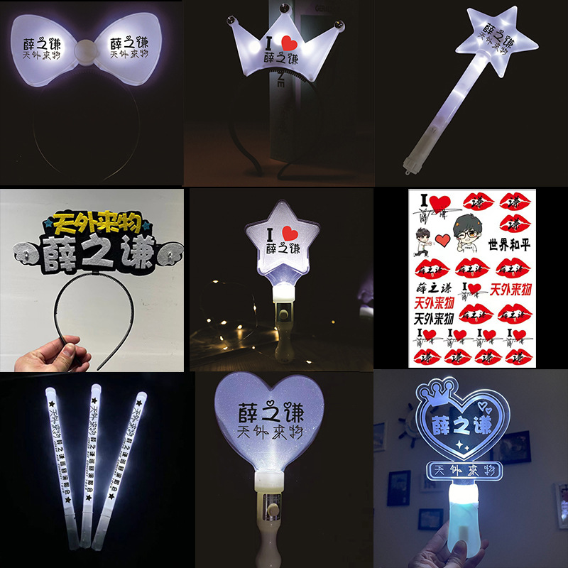 Xue Zhiqian tongkat penopang, flash stick bintang lima titik cinta tongkat konser stik cahaya mahkota akrilik bando LOGO