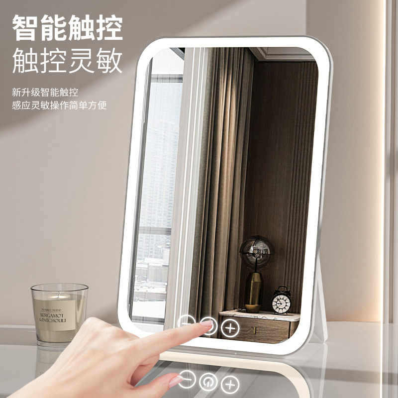 Cermin Rias Led Selebriti Internet Cermin Rias Wajah Desktop Tipe Lampu Pengisi Daya Cermin Portabel Sentuh Logo Kustom