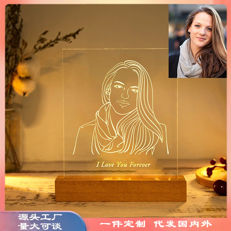 Lampu meja led dasar kayu polos hadiah ulang tahun perusahaan iklan liburan kreatif lintas batas lampu malam 3D