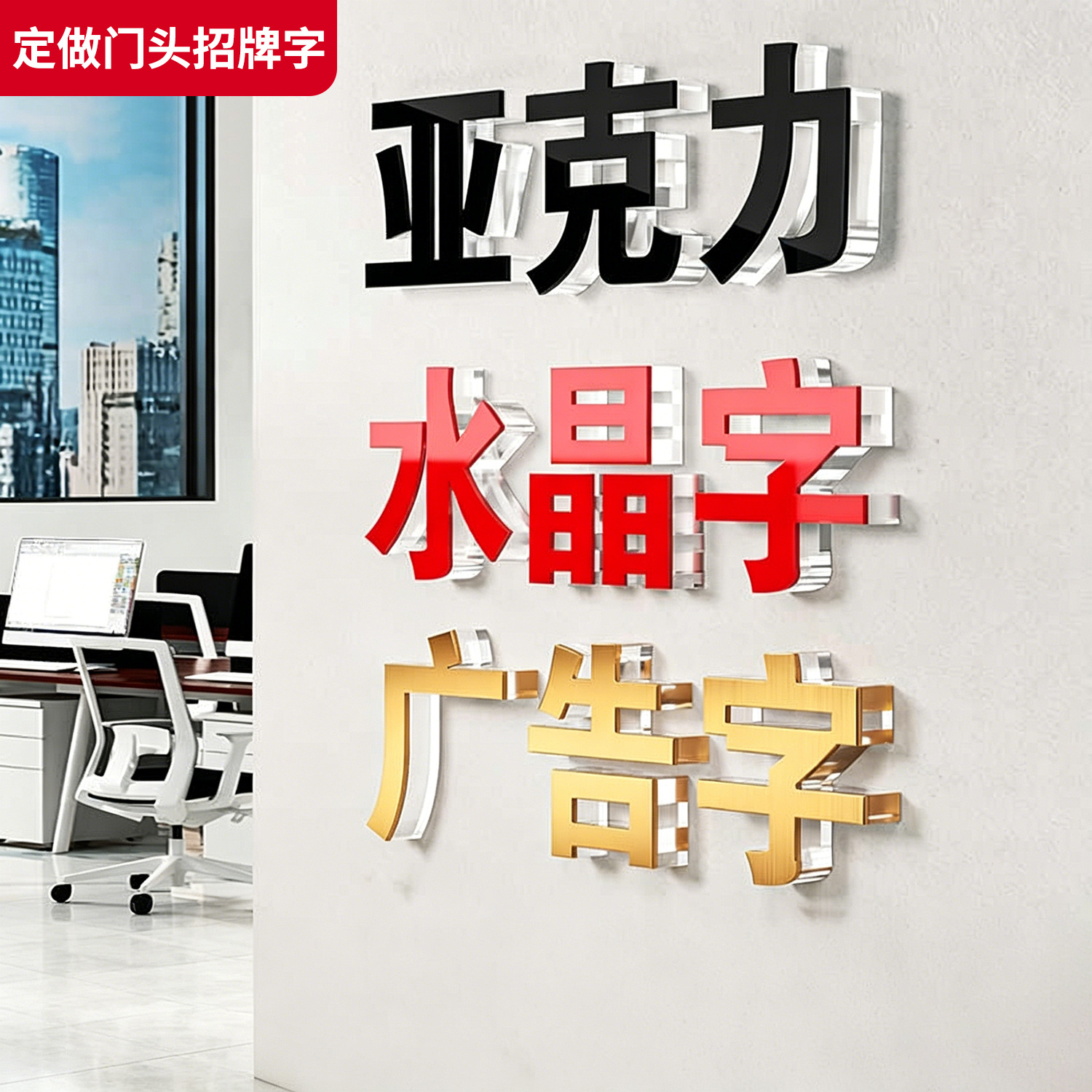 Huruf kristal kustom untuk papan nama iklan, huruf akrilik bercahaya, papan nama pintu kustom, huruf PVC 3D perusahaan.
