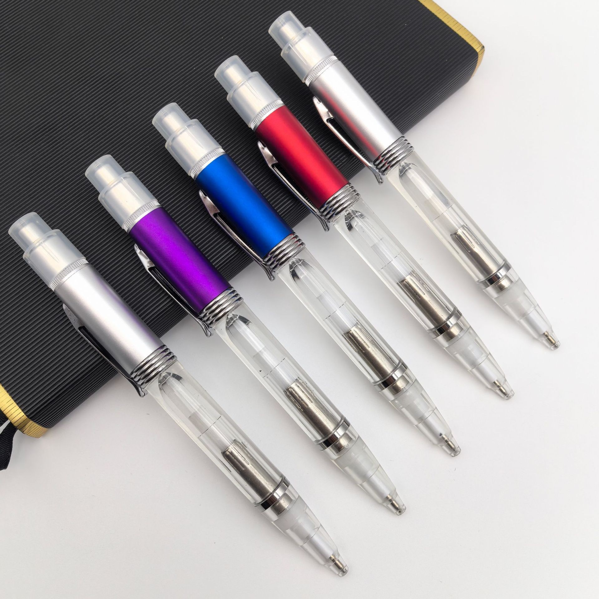 Pena lampu LED transparan multifungsi, pena pemegang lampu warna-warni kreatif multifungsi dengan iklan promosi dapat dicetak LOGO