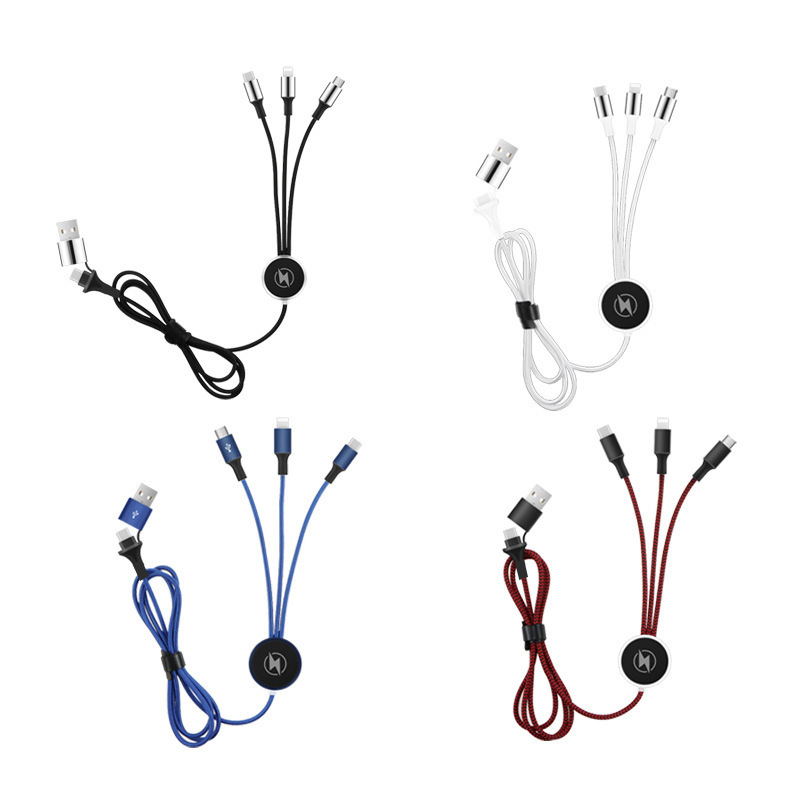 Kabel Data LOGO Bercahaya LED 5-in-1 Kabel Pengisi Listrik Ponsel Tenun 2 Tarik 3 Kabel Data Hadiah Bisnis