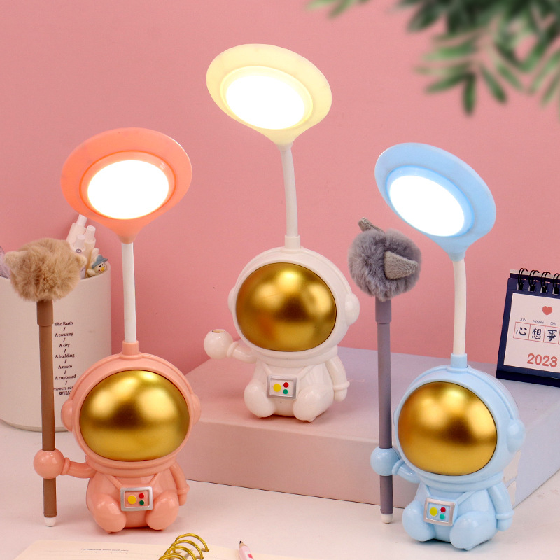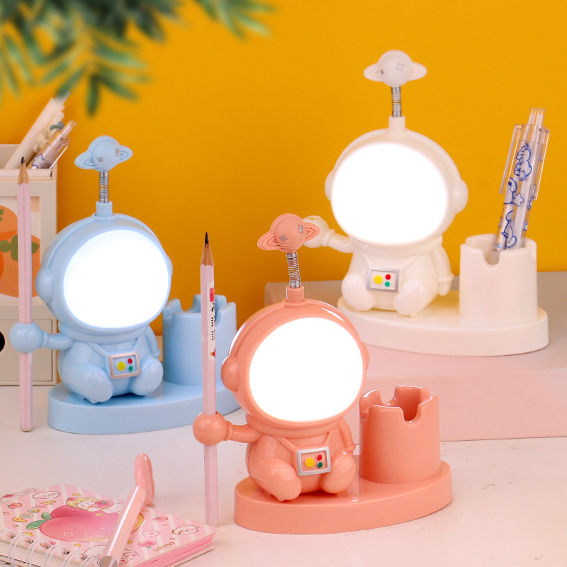 Lampu meja kecil kartun astronot anak, lampu meja membaca belajar Perlindungan Mata lembut lampu meja aktivitas cetak logo hadiah