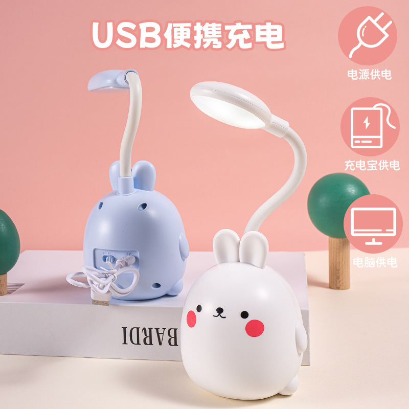 Lampu meja kecil lintas batas, lampu depan led kartun kelinci dapat diisi ulang untuk desktop anak lipat lampu samping tempat tidur cetak lo