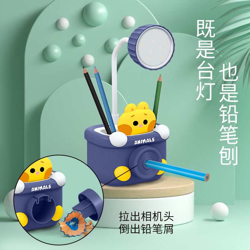 Cross-border lampu meja kecil anak, pegangan pena kartun rautan pensil warna-warni lampu depan dapat diisi ulang hadiah taman kanak-kanak