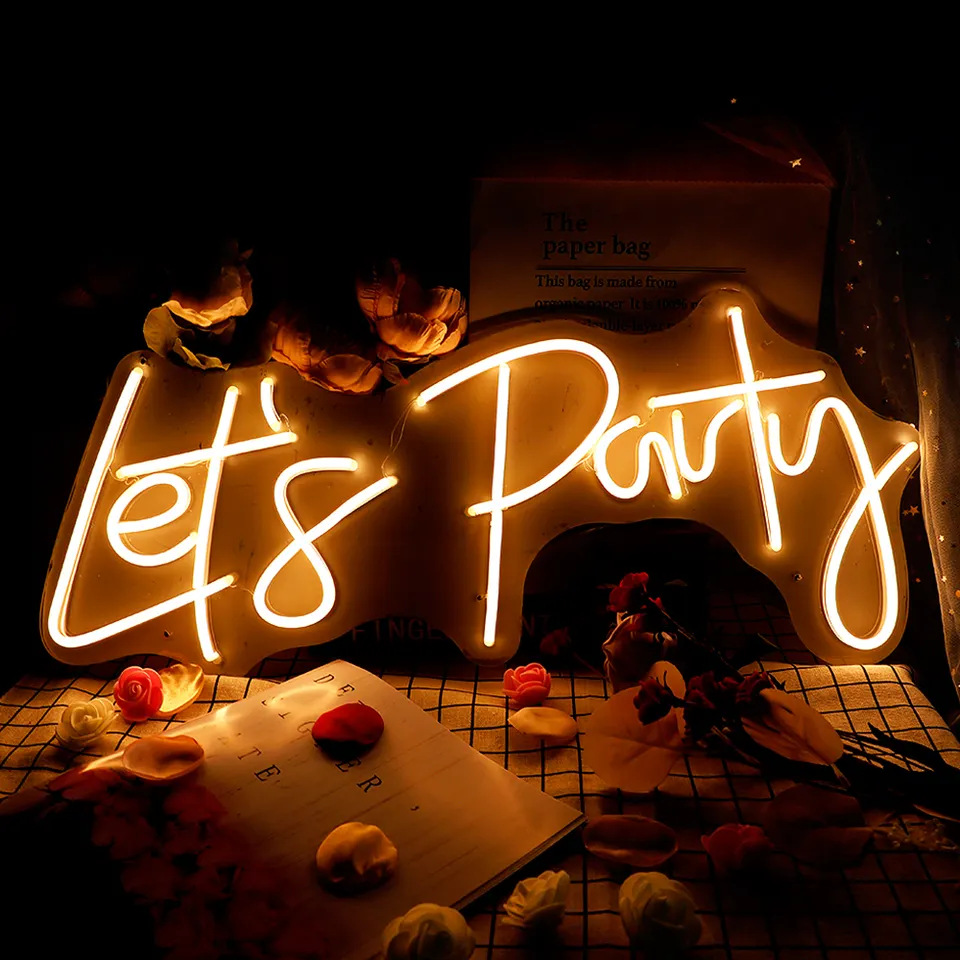 Lampu iklan USB LED lintas batas Amazon lampu neon Let's pesta liburan dekorasi pesta pemodelan pelat cahaya